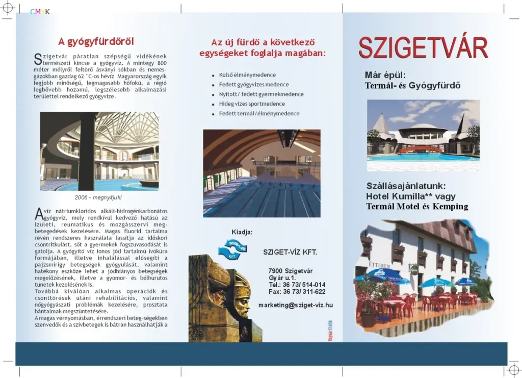 A 2006-os nyitás prospektusa nyomdai előkészítésének lenyomata – általam a Bognár Stúdióban készült a nyomtatvány – így mutatta be a fürdőt: